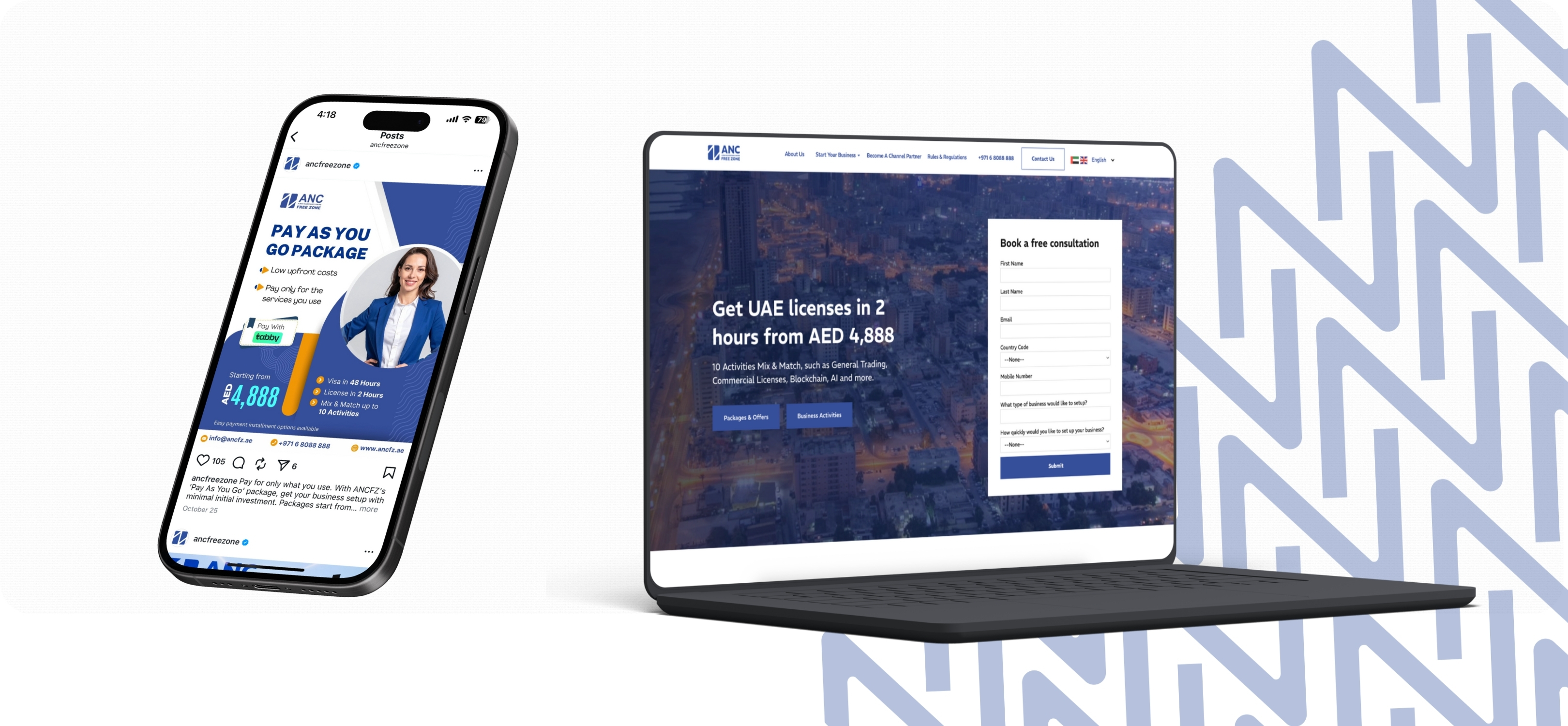 We also elevated ANCFZ’s digital footprint by designing and developing a modern, user-friendly website. With integrated tools and CRM functionality, the platform enables instant lead capture, seamless inquiry management, and real-time partner registrations.
